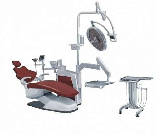 Trolley-mounted stainless st 1. The cart-type instrument tray improves the bearing capacity of the dental chair, makes the whole machine more stable, and eliminates the pressure of the instrument arm to the patient.2. The bottom adopts aluminum alloy die-casting process to