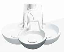 Rotatable ceramic spittoon The rotatable ceramic spittoon facilitates patient spitting and facilitates four-handed operation during treatment.