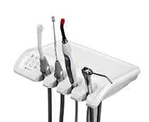 Light Arms and LED Lights The stepless adjustable LED dental light has three-axis rotation, manual light switch and infrared sensor switch, which can control the on and off of the light, and can also steplessly adjust the strength of the light source. The handle is detachable a